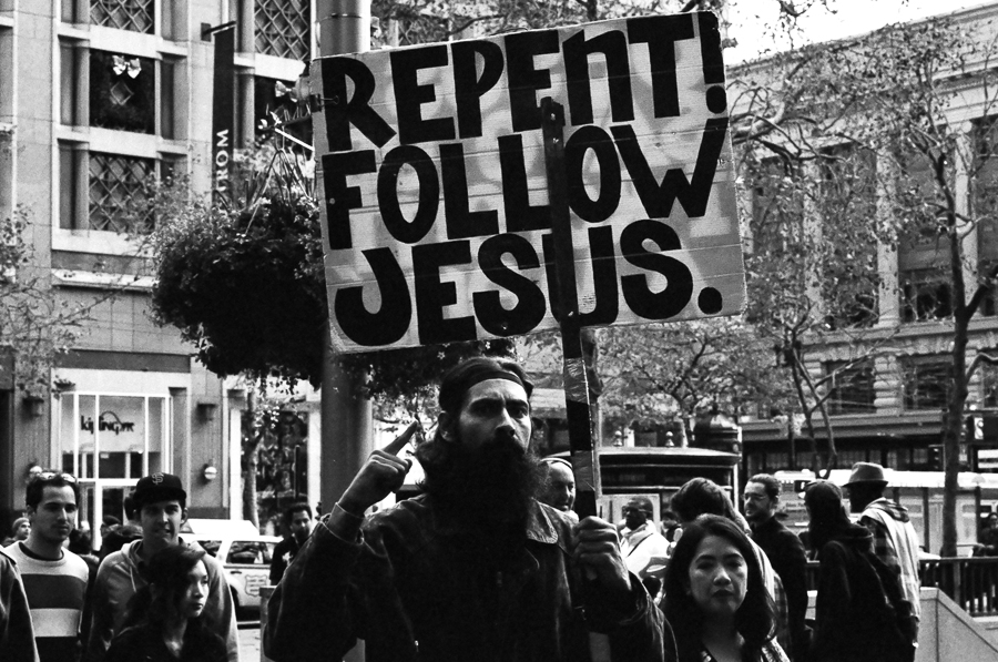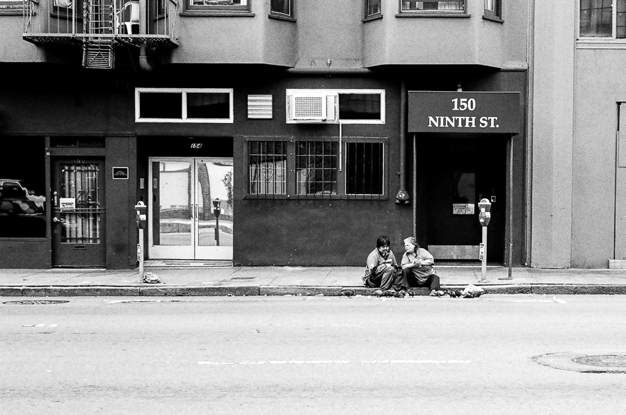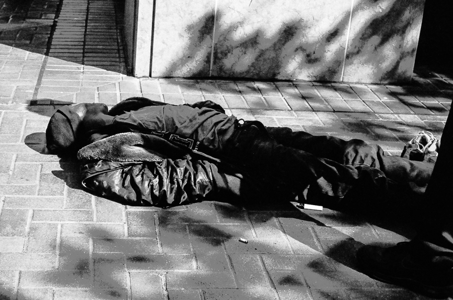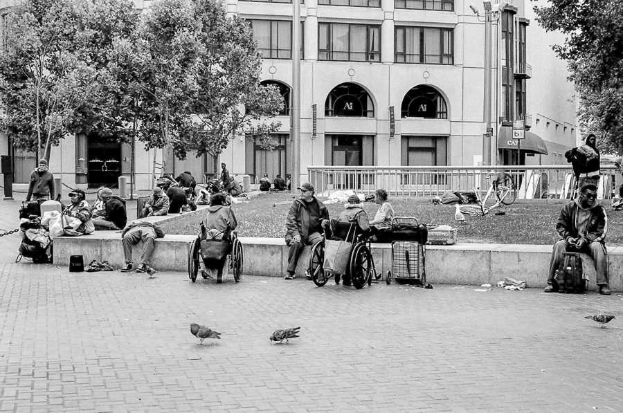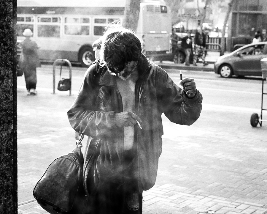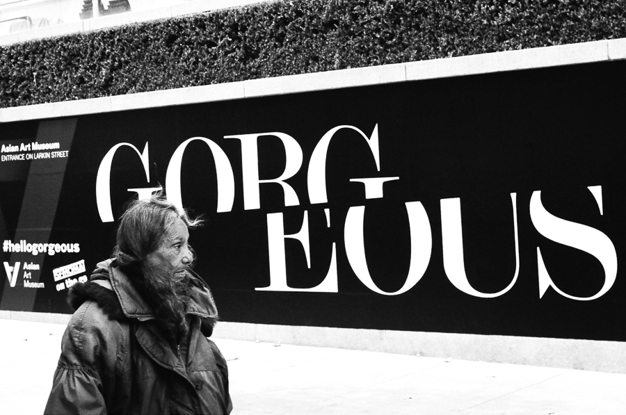 The streets of San Francisco have many people living without hope. The man in this photo is blurry, but I think it’s a good counterpoint to the in-focus affluent leg to the right. All of the legs show people just walking by, going about their business, while this man sits alone.