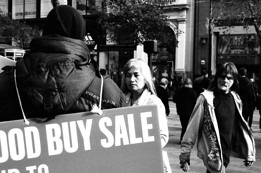 Sometimes I stand near an interesting background and wait for interesting people to walk past. Some are lost in their own thoughts.