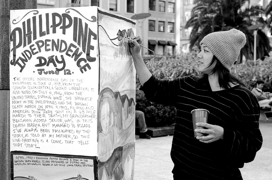 I came across a Philippine Independence Day celebration and this young lady was sitting alone in a small tent looking very bored. She brightened up when I took her photo.