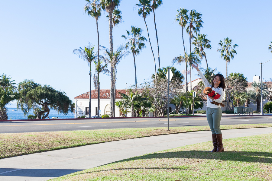 With a puppy to manage, we decided to do a road trip for Christmas and drove down to Santa Barbara. It was the first time there for both of us. On the way, we stopped and took a photo in the shade of a battle tank located on the side of the road in San Luis Obispo. The sun was really nice – the warm air helped the colds that we were both dealing with.