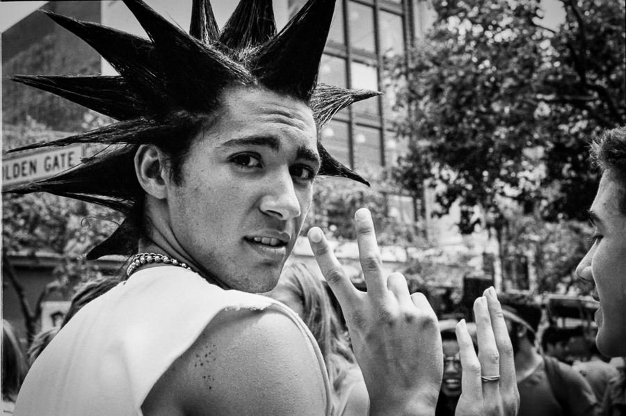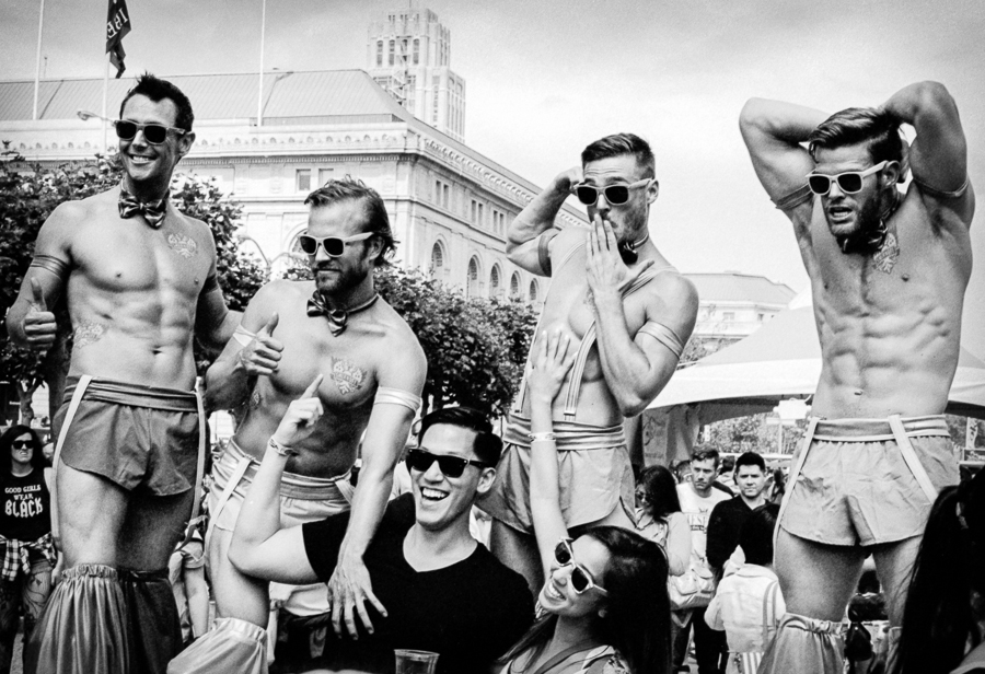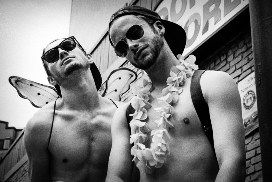 I took a needed break from work last night and developed a roll of film. I really like it when I wait for a while before developing and have no clue what’s on the film. I enjoy the suspense when I take the negatives out of the detergent wash, hang them up to dry in the shower, and see what’s there. This roll included my last photos from the San Francisco Pride event, and some of them are among my favorites from that day.