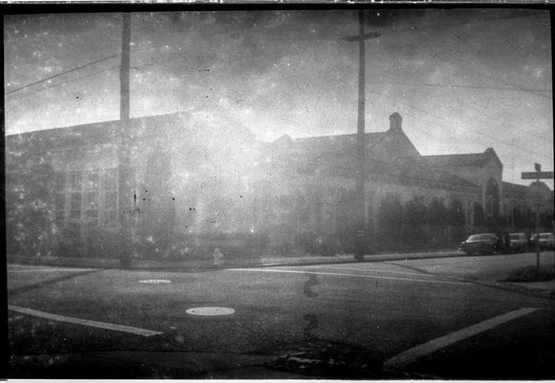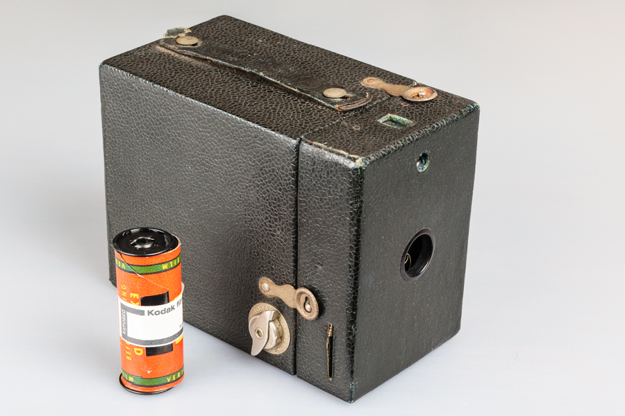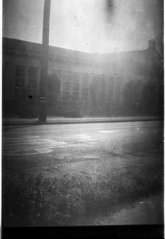 I did some research and found that this model of camera was produced from 1930-1933 in Canada and was sold for $1. It’s made of cardboard with a faux leather covering, and makes 6 x 9 cm negatives. Very definitely a budget camera despite the large size of the negatives. The film, however, is Kodak Verichrome Pan, which was produced starting in 1956, so the camera was at least 23 years old before the photos were taken. Apparently, Verichrome Pan was a very stable film. Adding to that the fact that 120 film has a black paper backing on it to protect it from the light when it’s loaded into the camera, I held out a tiny bit of hope that there might be some images on it.