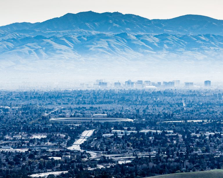 The trail rises above Silicon Valley. Here you can see the new Apple campus, which is the huge circle, and the high rises of the center of San Jose. At the top of the hill is the Lick Observatory, which was built in 1888 and is 4205 feet above sea level. That’s close to the height of the highest point in the British Isles.