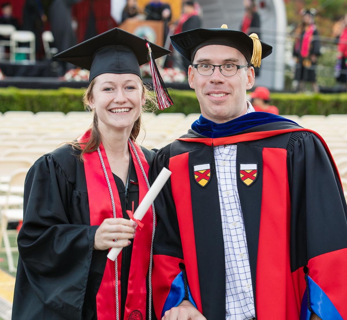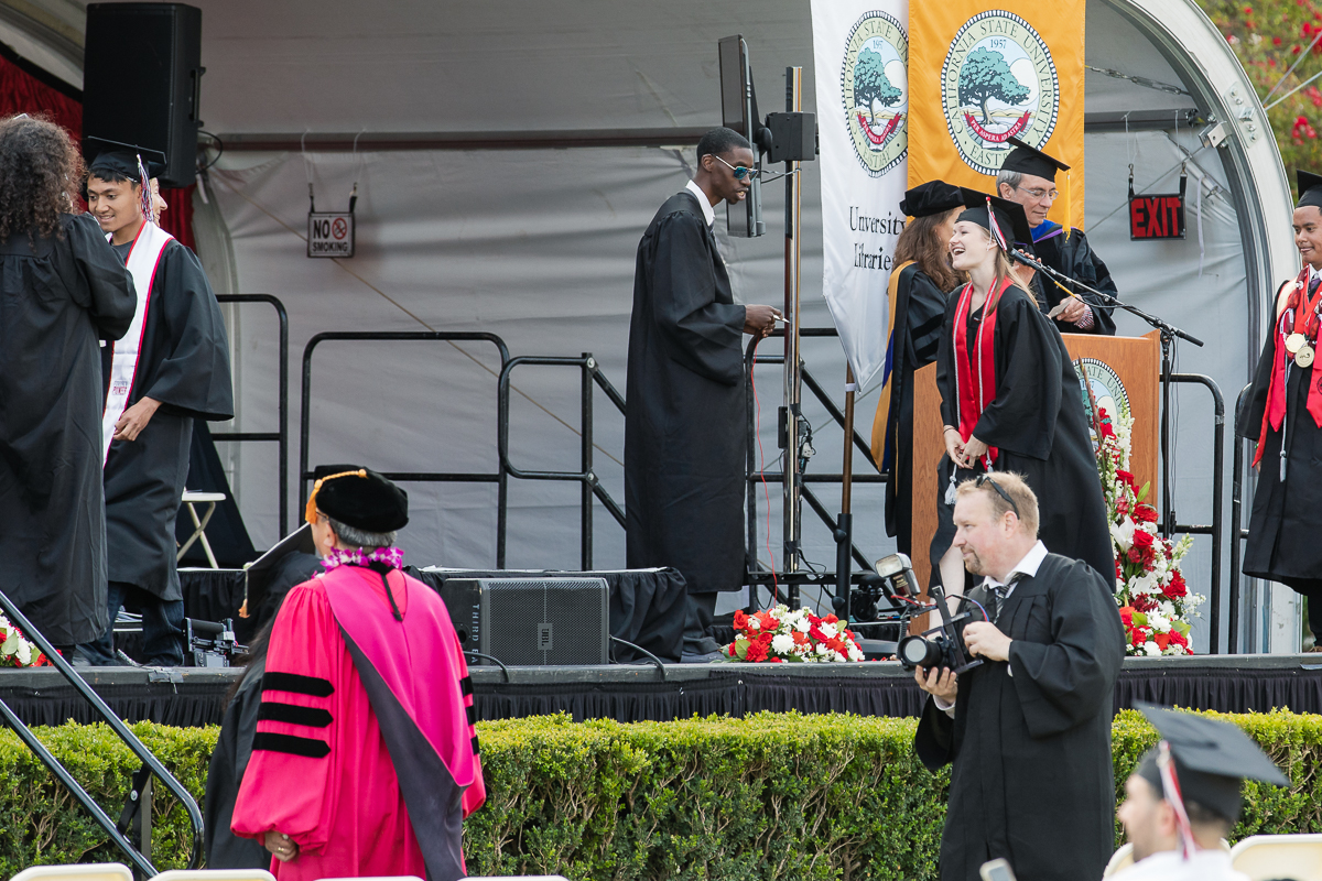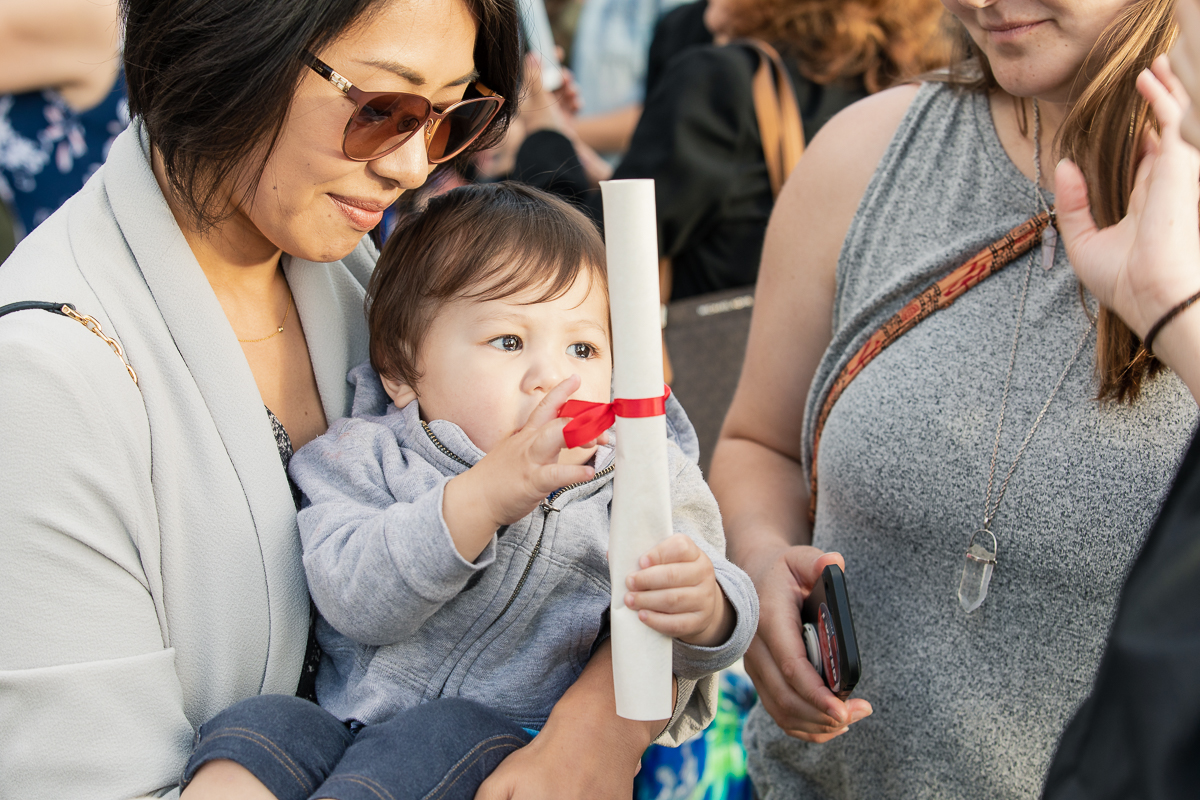 It may look as though Cerys has graduated but she actually still has a couple of classes to take and will graduate in December. This was her chance to walk across the stage all dressed up, though, so she took it.