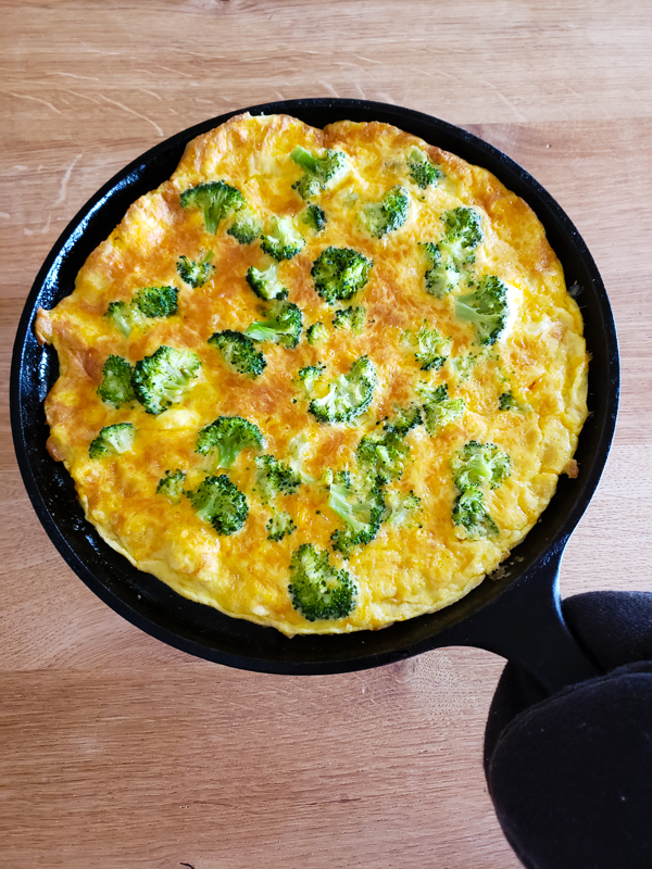 He then got back up to the table for second breakfast. This time I made him Daddy’s special cheese and broccoli egg pizza/frittata.
