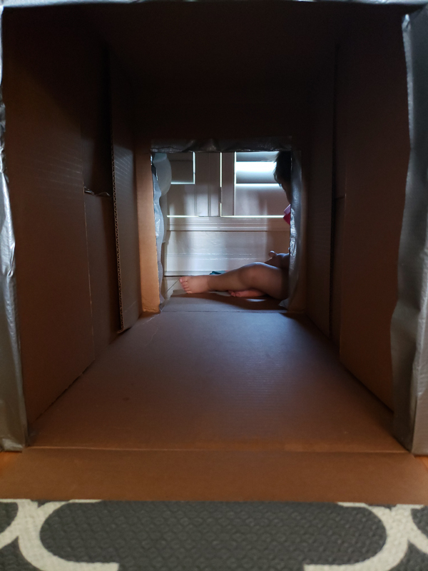 After breakfast, Louie got down and ran around the house for a while. I made him a quick fort, which he played in for a few minutes.