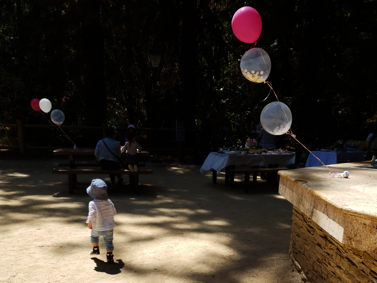 After second breakfast Louie and I went out into the front yard, watered the plants, and played with his toy watering can. Then it was time to get ready and drive to a birthday party in Los Altos.
